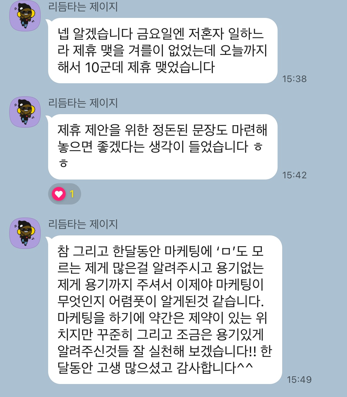 참으로 든든한 한달이었습니다."