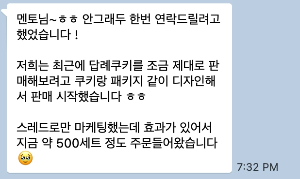 "멘토님! 쓰레드로 주문 500개가 들어왔어요"